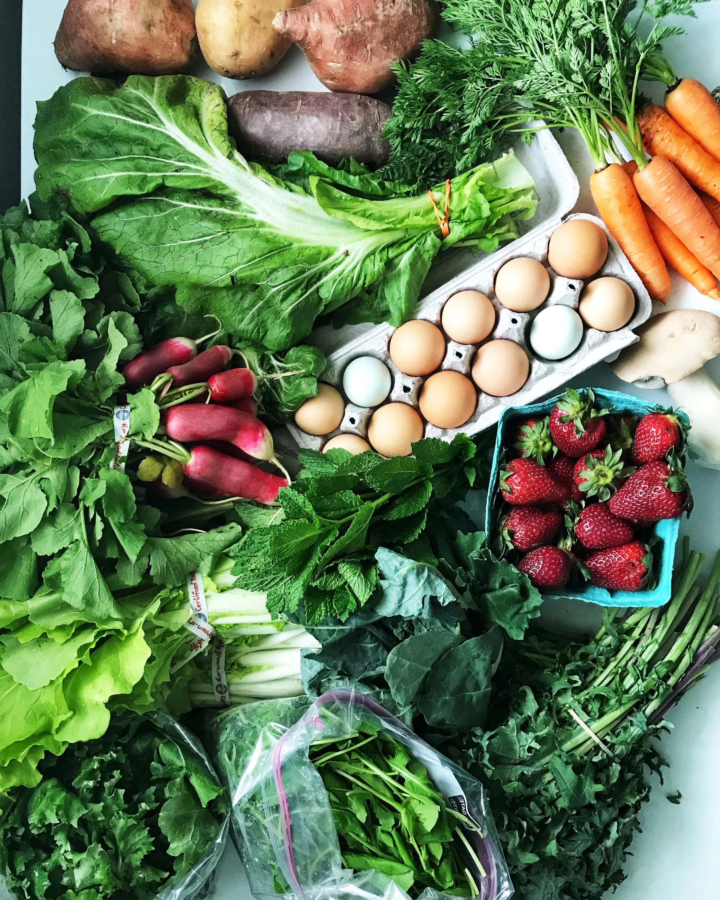 A recent farmer's market haul showcasing the vegetables I eat in a week. I would not have gotten strawberries or sweet potatoes if I were still doing keto Paleo